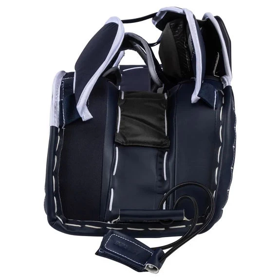 – Logement de la jambe : Bauer a peaufiné son canal de jambe et son cerclage pour ce nouveau coussin Supreme. Tune-Fit+ est le résultat de plusieurs générations de raffinement du système Tune-Fit. Cette itération comporte une sangle en forme de V de taille fixe mais réglable permettant un ajustement plus serré ou plus lâche.