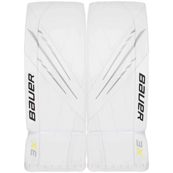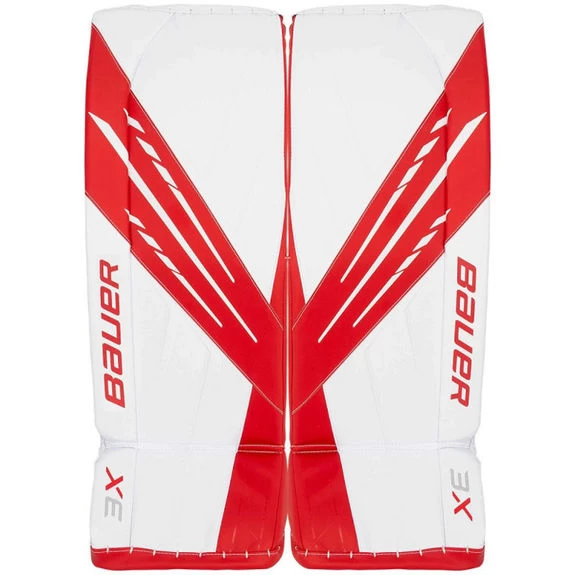 – Protecteur de cuisse : Bauer a choisi de conserver un Dynamic Flex Core similaire à celui vu sur le coussin 2X bien connu, de l’année dernière avec le renfort CURV Composite dans la montée de la cuisse. La principale différence entre le noyau du 3X et du 2X est une forme précourbée plus légère, plus fine et plus flexible qui fait du 3X un coussin confortable et utilisable dès le départ. L’utilisation de CURV dans la cuisse permet à la fois de garder la forme des coussinets tout au long d’une utilisation répétée tout en donnant au coussin le même type de rebonds rapides que les gardiens de but ont appris à connaître et à aimer.