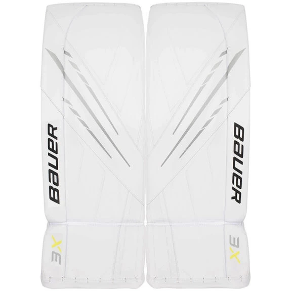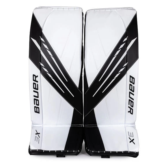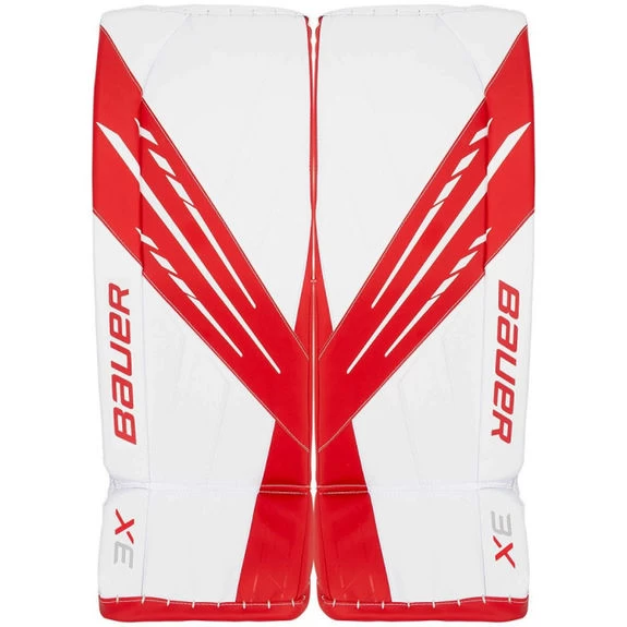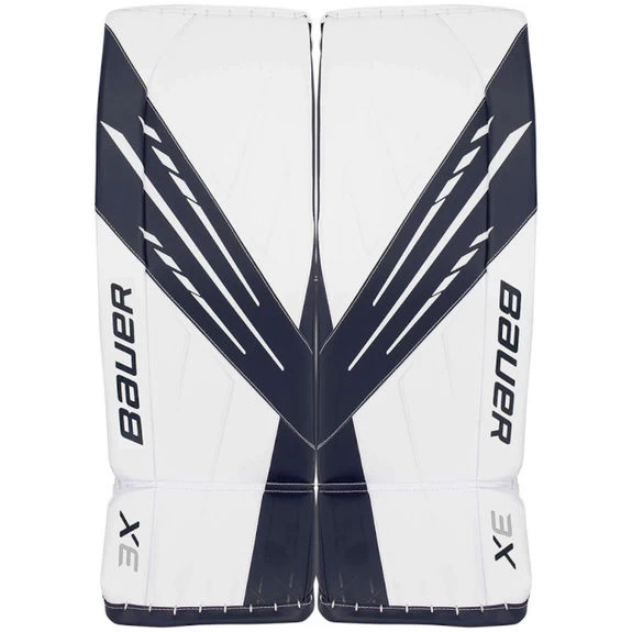 – Protecteur de cuisse : Bauer a choisi de conserver un Dynamic Flex Core similaire à celui vu sur le coussin 2X bien connu, de l’année dernière avec le renfort CURV Composite dans la montée de la cuisse. La principale différence entre le noyau du 3X et du 2X est une forme précourbée plus légère, plus fine et plus flexible qui fait du 3X un coussin confortable et utilisable dès le départ. L’utilisation de CURV dans la cuisse permet à la fois de garder la forme des coussinets tout au long d’une utilisation répétée tout en donnant au coussin le même type de rebonds rapides que les gardiens de but ont appris à connaître et à aimer.