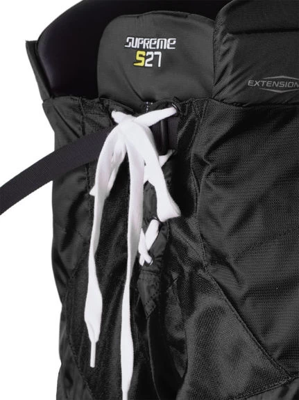 Logos Bauer sérigraphiés partout ; logo Bauer en caoutchouc 3D imprimé sur la cuisse.