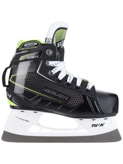 – Quartier : Le GSX utilise une bottine en fibre composite qui est beaucoup plus douce et plus tolérante que celui des patins Elite et Pro. La technologie StanceFlex a été ramenée à la GSX pour donner à la botte le même type de flex que celui des deux autres modèles. Les patins GSX sont une excellente option pour les gardiens de but débutants ou pour ceux qui grandissent encore et qui sont suffisamment légers pour ne pas avoir besoin d’une bottine Pro ultra-rigide.