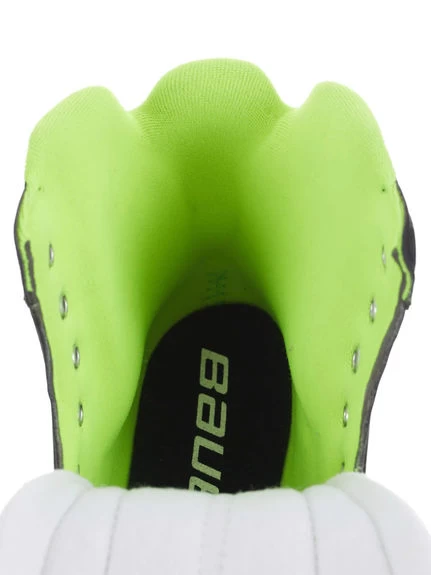 – Doublure intérieure : La doublure Grip est visible dans le Bauer GSX avec un rembourrage de cheville en mousse à mémoire de forme qui offre un ajustement confortable tout en verrouillant efficacement votre pied à sa place.