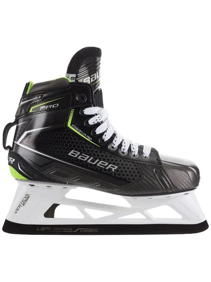– Quartier : Le patin Pro est conçu pour le gardien de but de niveau élite qui veut une botte rigide pour à la fois soutenir son pied et fournir le meilleur transfert d’énergie et donc les poussées les plus fortes. Bauer utilise un quartier 3D Lasted Carbon Curv qui donne à la botte sa rigidité latérale tandis que la technologie StanceFlex Pro permet au gardien de but de fléchir la botte vers l’avant avec une restriction minimale d’amplitude.