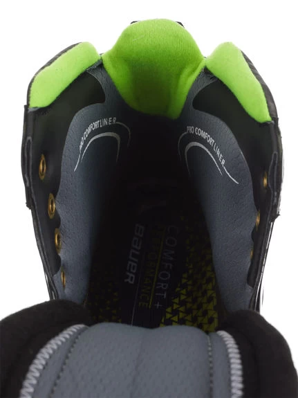 – Doublure intérieure : La doublure du patin Pro est leur LockFit Pro avec un nouveau matériau Hypersense. L’ensemble de la doublure est conçu pour garder votre pied au frais et au sec en évacuant l’excès d’humidité. Autour de la cheville, Bauer a ajouté son rembourrage AeroFoam Pro pour créer un coussin ultra-confortable qui est également thermoformable, vous offrant ainsi, un ajustement parfait dans l’un des endroits les plus sensibles du pied.