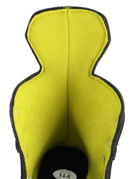 – Languette : En feutre noir 30 oz 2 parties pour éviter de tourner sur le tibia.